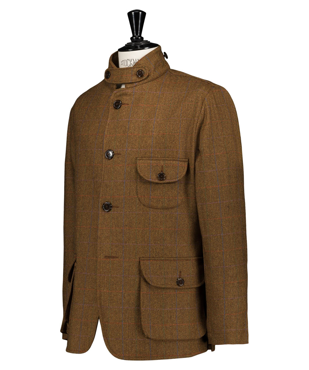 Modèle Lothar L. Veste décontractée avec un col officier et une patte boutonnée, une poche poitrine et deux poches basses, conçue avec des pattes de serrage sur les côtés et des plis d'aisance aux épaules. Sa coupe est étudiée pour apporter confort et caractère. 100% laine. Taille du 46 au 54. Coloris : marron avec des carreaux.