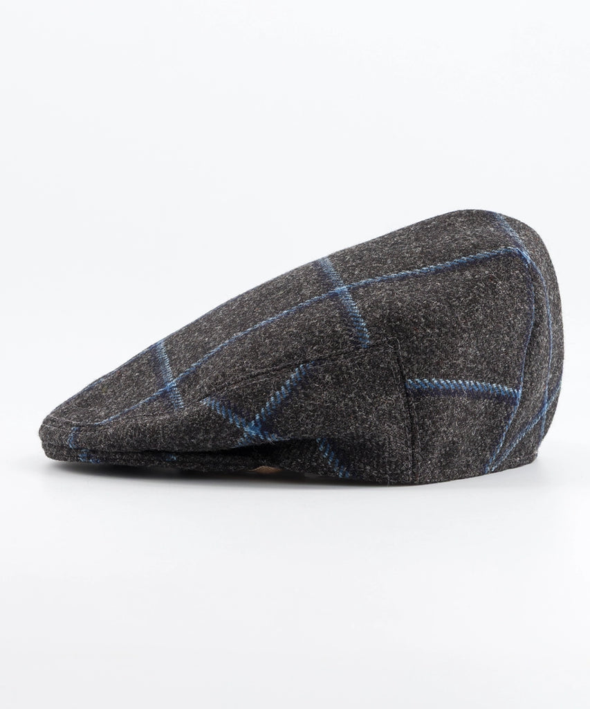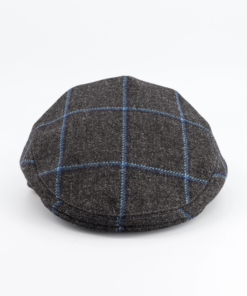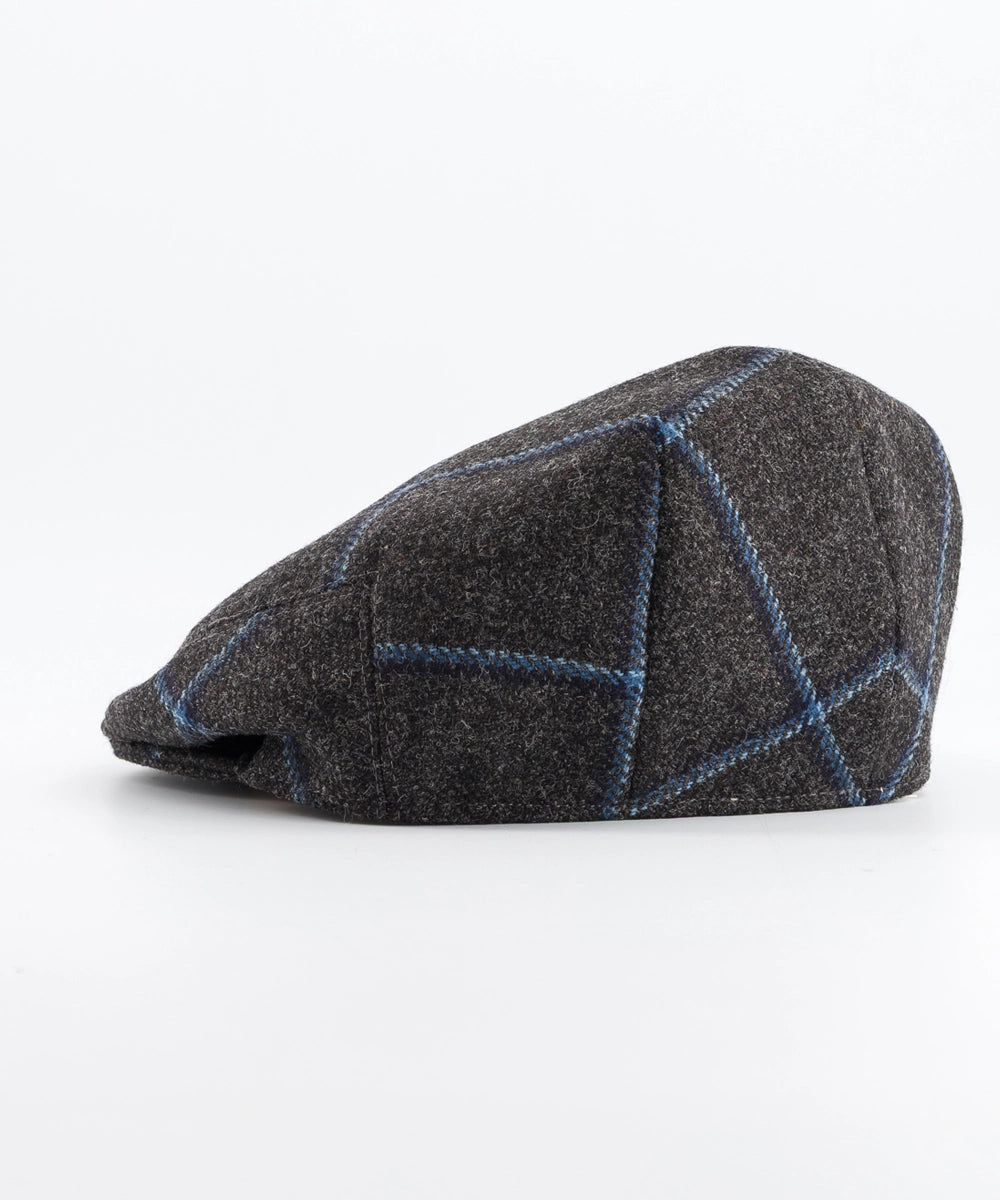 Modèle Le Moko. Casquette à porter à la ville en tenue décontractée ou à la campagne. Composée de 100% laine. Tailles du 56 au 61. Gris chiné filet deux bleus.