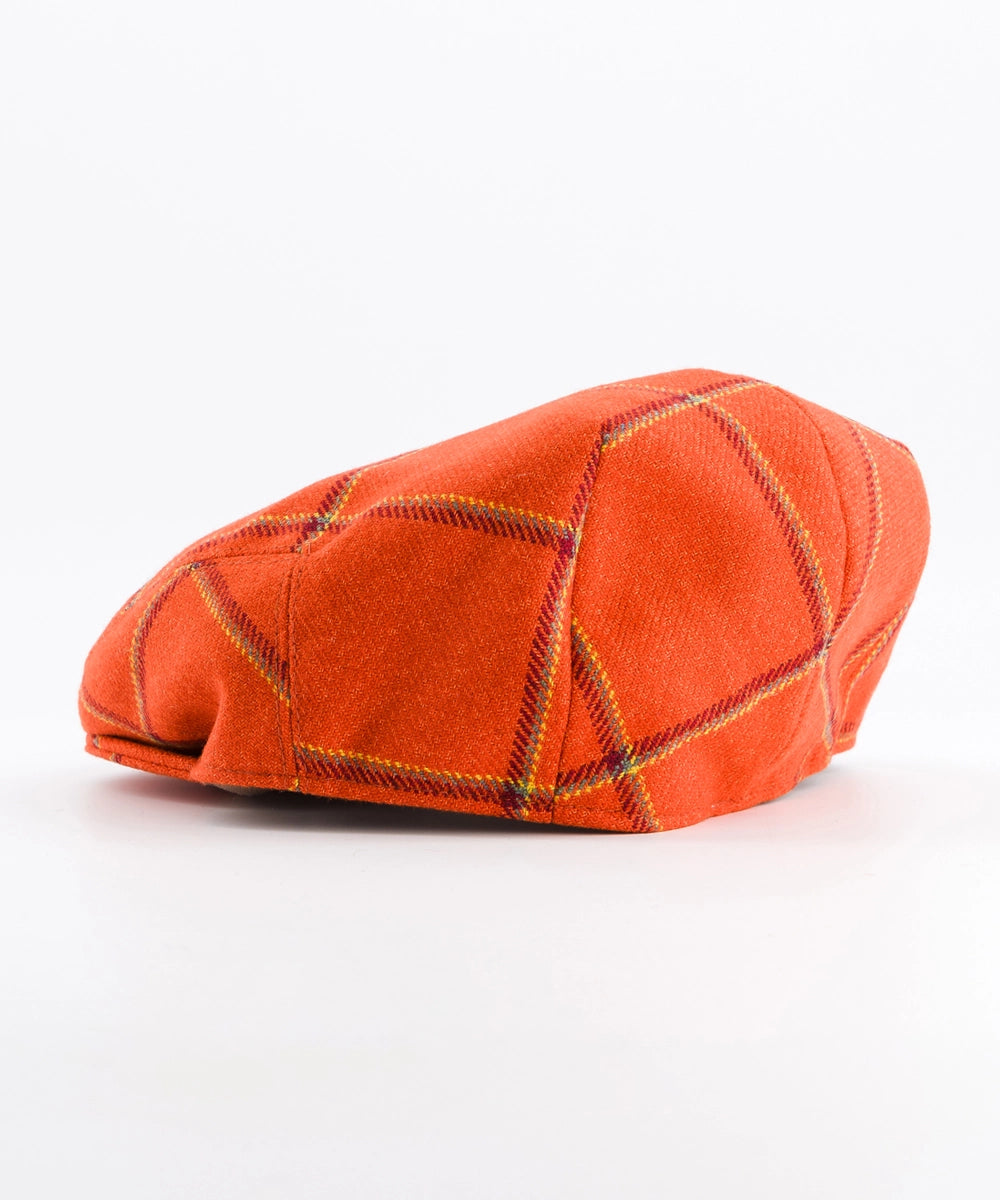 Modèle Le Moko. Casquette à porter à la ville en tenue décontractée ou à la campagne. Composée de 100% laine. Tailles du 55 au 62. Tweed orange.