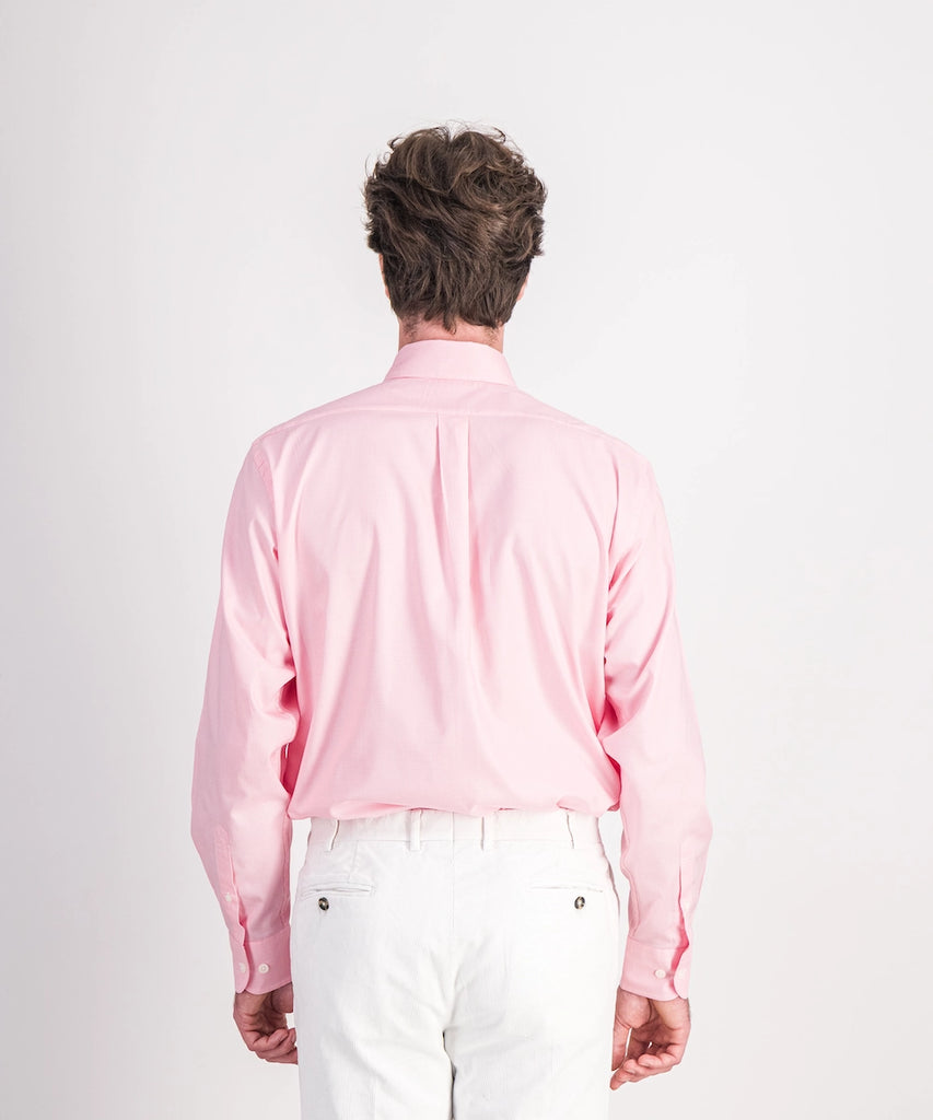 Modèle Alfred RB. Chemise de forme classique avec col boutonné à manches longues et poignets simples. 100% coton. Taille 39 au 44. Coloris : Pied de puce rose.