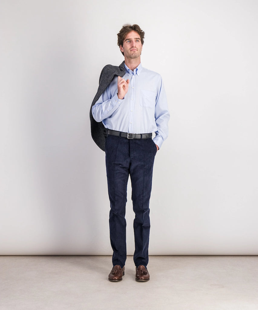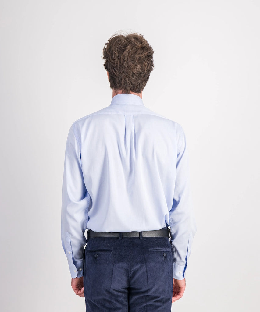 Modèle Alfred RB. Chemise de forme classique avec col boutonné à manches longues et poignets simples. 100% coton. Taille 39 au 42. Coloris : Uni ciel.