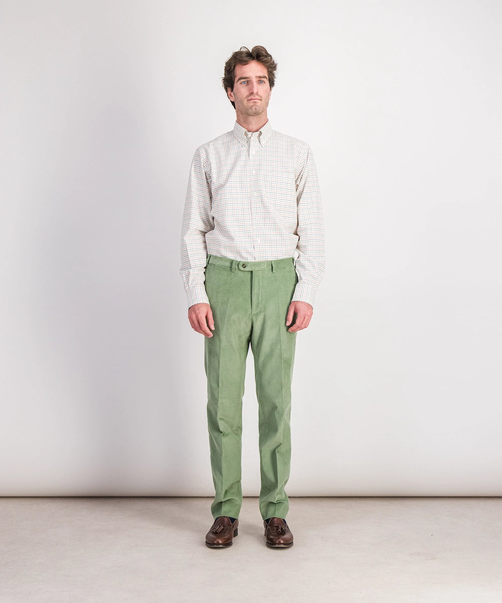 Modèle Cork M. Pantalon décontracté en velours à fines côtes, de coupe moderne sans pinces. Taille du 44 au 50. Coloris : watermelon.