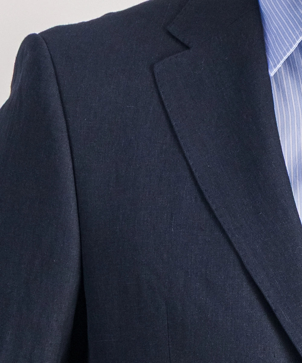 Modèle Quadrille. Veste demi-doublée de coupe traditionnelle. 100% lin 270g. Tailles 50 au 60. Coloris : marine.