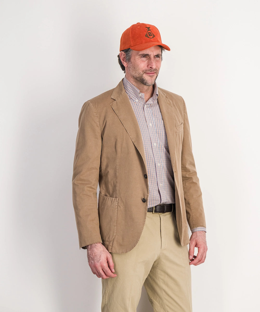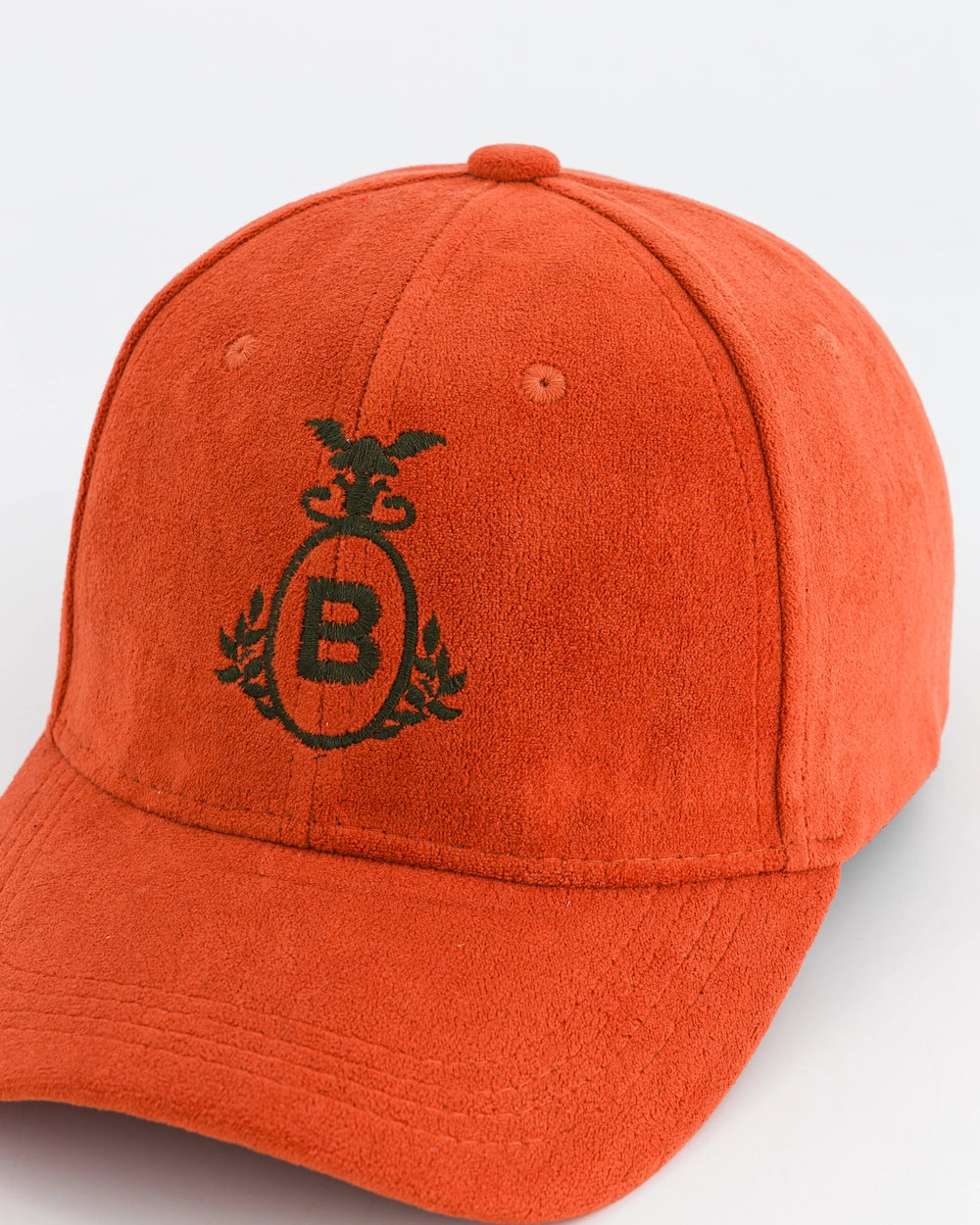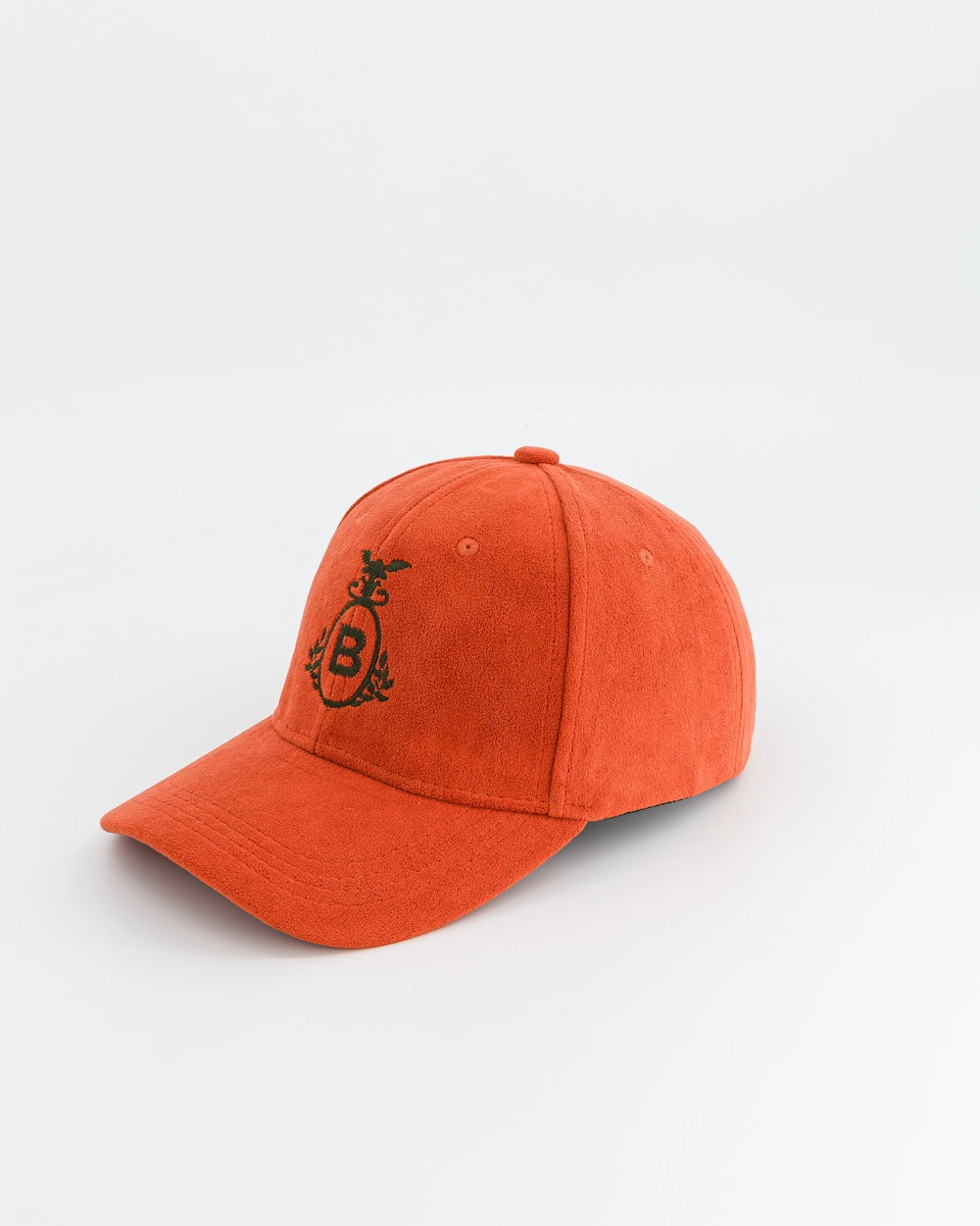 Casquette de sport brodée, type baseball en moleskine. Taille unique, réglable avec une patte de serrage ton sur ton. Coloris : orange avec broderie vert printemps.