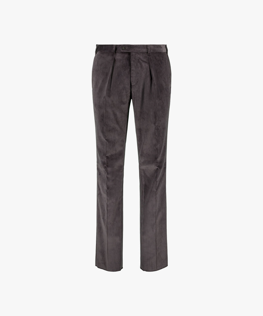 Modèle Cork P. Pantalon en velours à côtes moyennes, de coupe moderne avec pinces pour donner de l'aisance. Taille du 42 au 54. Coloris : gris.