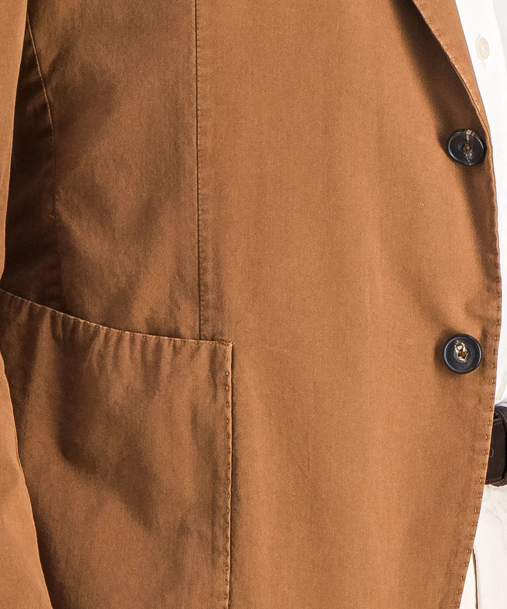 Modèle Toscan R. Veste légère non-doublée de coupe classique à deux boutons. Composée de 100% coton 260g. Tailles du 50 au 58. Coloris : tabac.