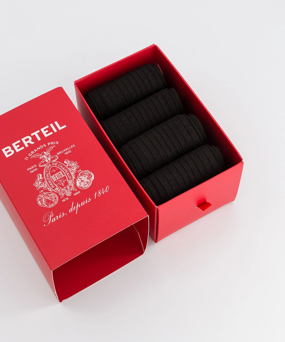Article Malice M. Boîte de 4 chaussettes longues, douces et confortables. 100% coton, double fil d'Ecosse. Fabrication italienne. Tailles 11 (40-42) et 11,5 (43-44). Coloris : marron.