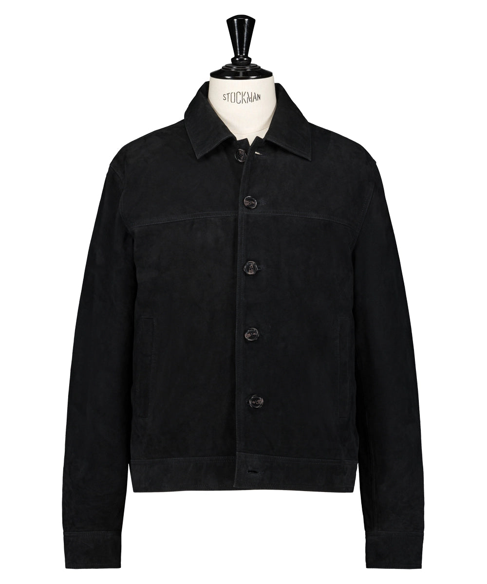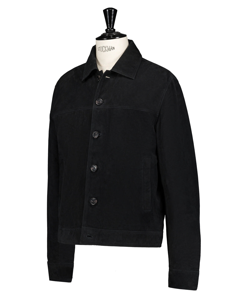 Modèle Montgomery. Blouson en peau. Composé de 100% chèvre velours. Taille : S au XXL. Coloris : marine.