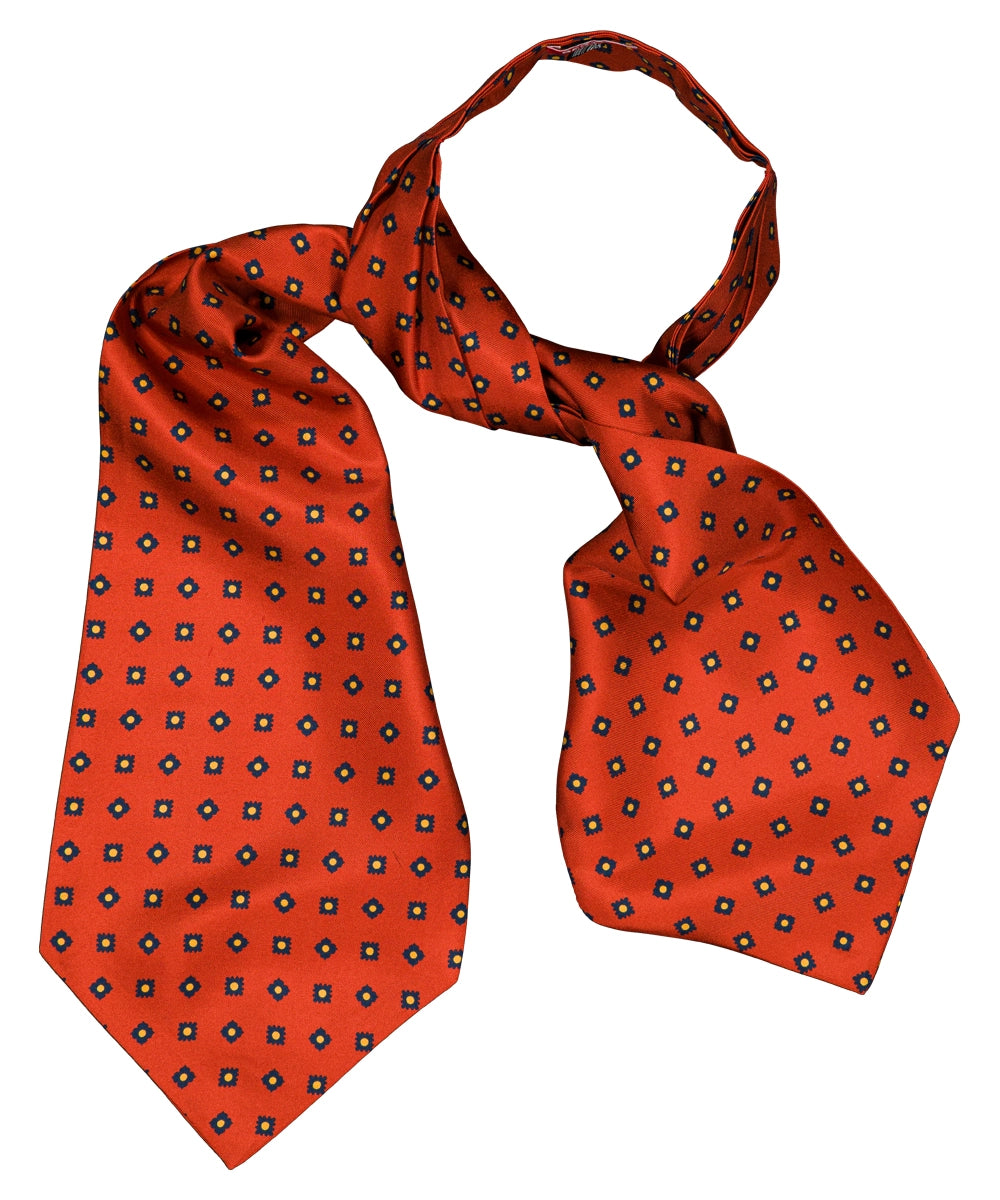 Modèle Ascott. Il donne un chic fou à une tenue simple ou habillée. 100% soie. Coloris : motif marine sur fond orange.