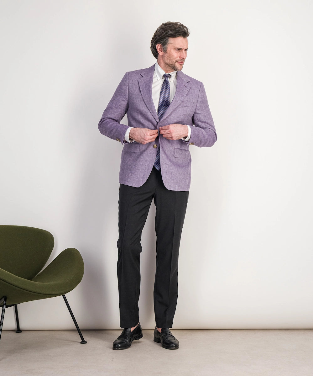 Modèle Killarney L. Veste demi-doublée de coupe classique. Composée de 100% lin 200g. Taille du 50 au 54. Motif : chevron.