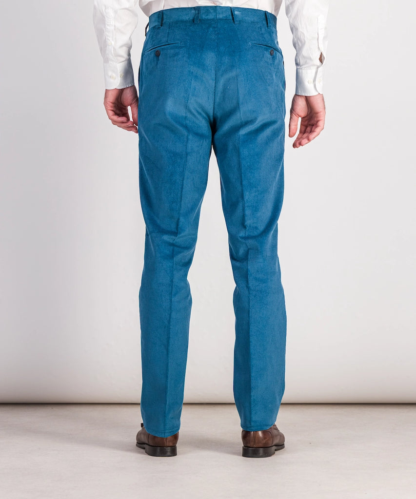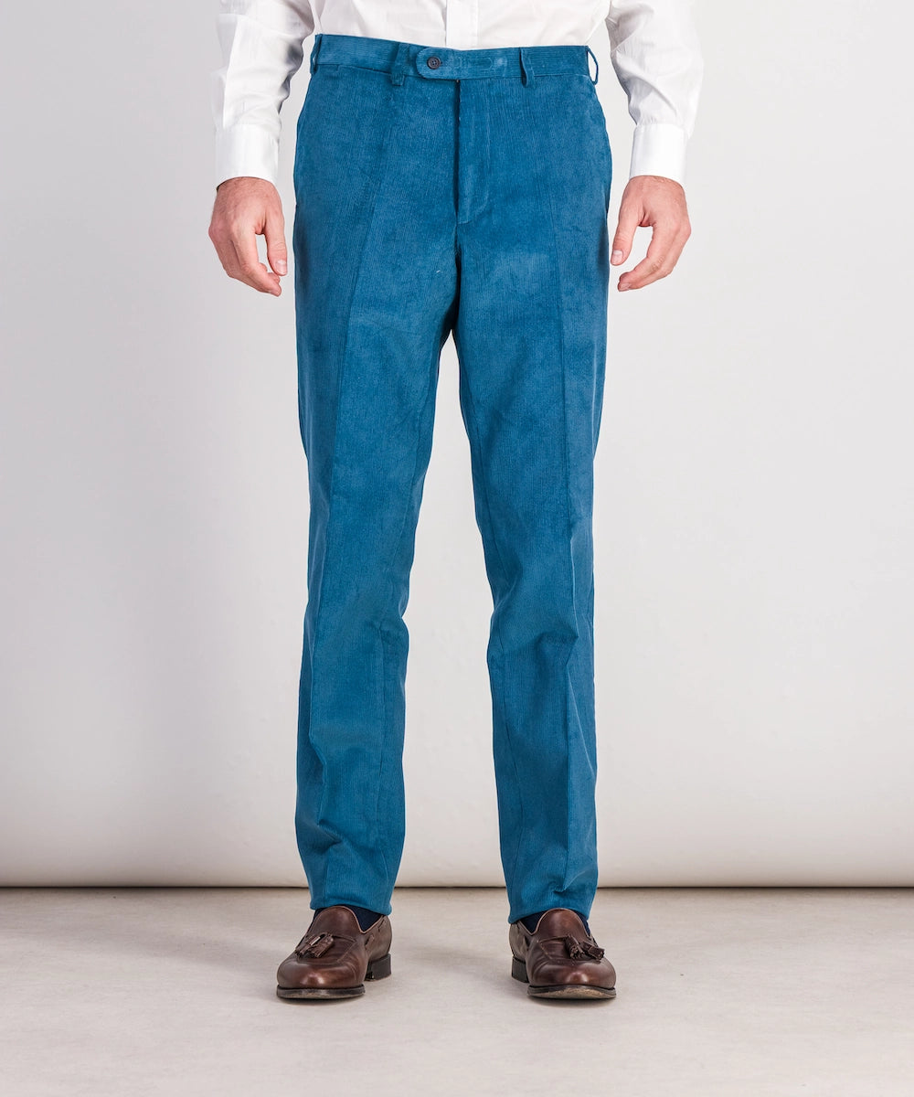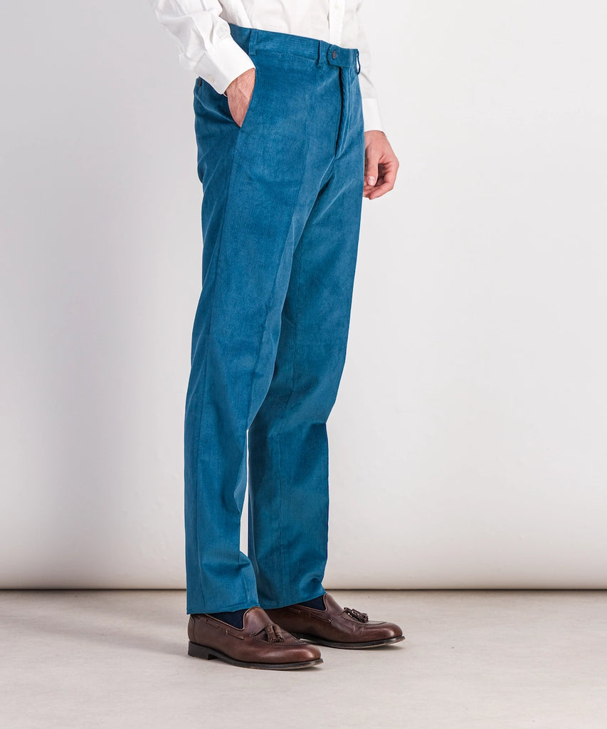 Modèle Cork M. Pantalon décontracté en velours à fines côtes, de coupe moderne sans pinces. Taille du 44 au 52. Coloris : petrol.